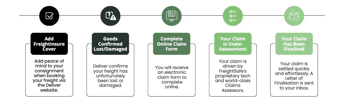 Simply add FreightInsure Cover to your consignment when booking your freight via the Deliver Website to give it a go - no lengthy forms or complex processes.
