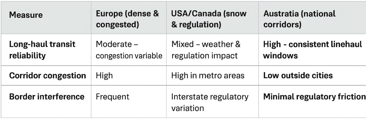 Australia stretches 4,000+ km from west to east, and our capital cities are separated by enormous spans of land that most other nations simply do not operate across. Yet freight moves here with speed, predictability, and cost efficiency that rivals, and in many cases beats, the US, Europe and Asia.
